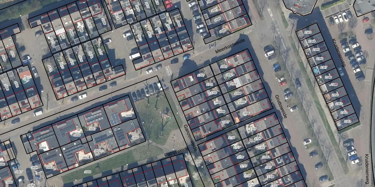 Gebruik de zoekbalk of klik op een perceel voor informatie over de adressen binnen dit perceel.
