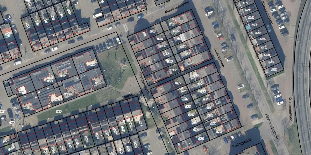 Het perceel waarop Ganzenweide 9 staat heeft een oppervlakte van 150 m². Dit is een middelgroot perceel. De perceeloppervlakte wordt geregistreerd door het Kadaster. Gedetailleerde informatie over de maten van dit perceel kunt u vinden in het rapport Kadastrale kaart met maatvoering van Ganzenweide 9.