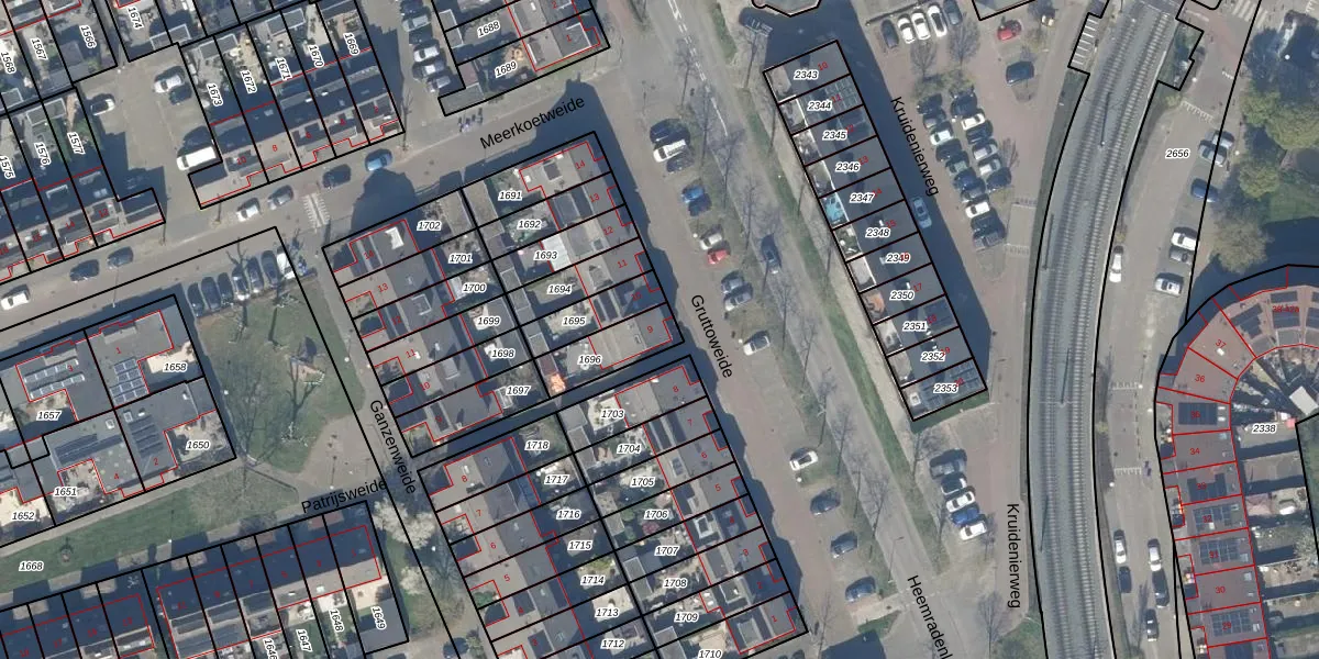 Het perceel waarop Gruttoweide 9 staat heeft een oppervlakte van 145 m². Dit is een middelgroot perceel. De perceeloppervlakte wordt geregistreerd door het Kadaster. Gedetailleerde informatie over de maten van dit perceel kunt u vinden in het rapport Kadastrale kaart met maatvoering van Gruttoweide 9.