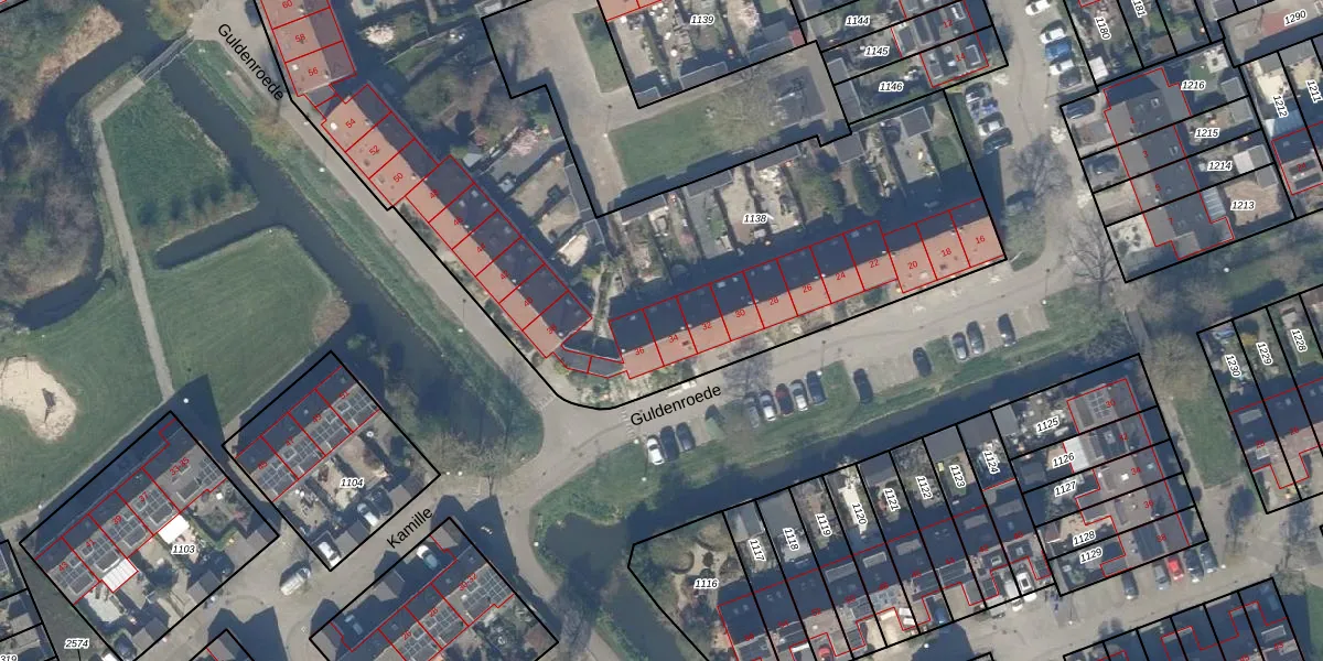Het perceel waarop Guldenroede 34 staat heeft een oppervlakte van 3850 m². Dit is een zeer groot perceel. De perceeloppervlakte wordt geregistreerd door het Kadaster. Gedetailleerde informatie over de maten van dit perceel kunt u vinden in het rapport Kadastrale kaart met maatvoering van Guldenroede 34.