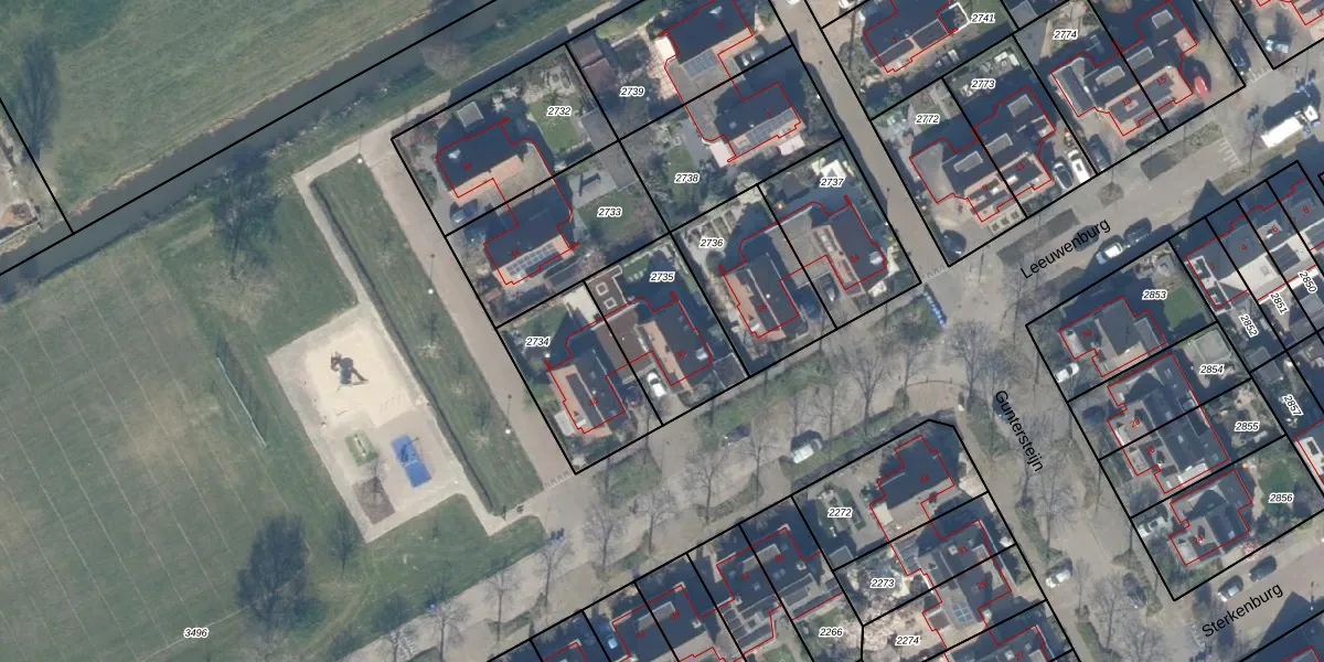 Het perceel waarop Guntersteijn 38 staat heeft een oppervlakte van 375 m². Dit is een groot perceel. De perceeloppervlakte wordt geregistreerd door het Kadaster. Gedetailleerde informatie over de maten van dit perceel kunt u vinden in het rapport Kadastrale kaart met maatvoering van Guntersteijn 38.