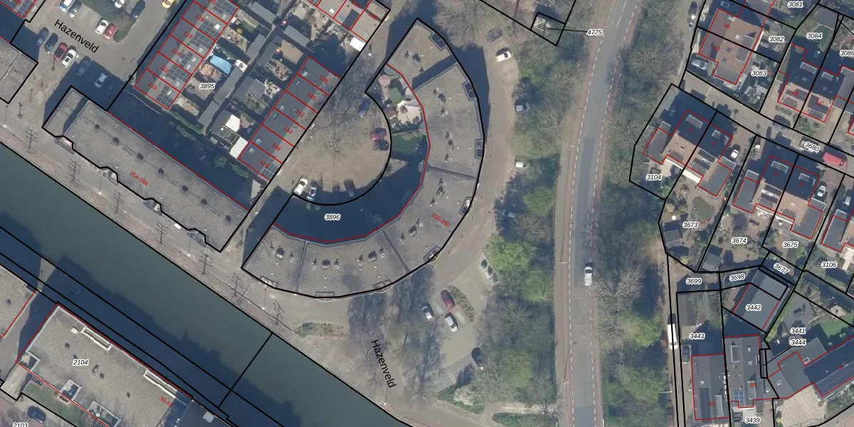 Het perceel waarop Hazenveld 166 staat heeft een oppervlakte van 1707 m². Dit is een zeer groot perceel. De perceeloppervlakte wordt geregistreerd door het Kadaster. Gedetailleerde informatie over de maten van dit perceel kunt u vinden in het rapport Kadastrale kaart met maatvoering van Hazenveld 166.