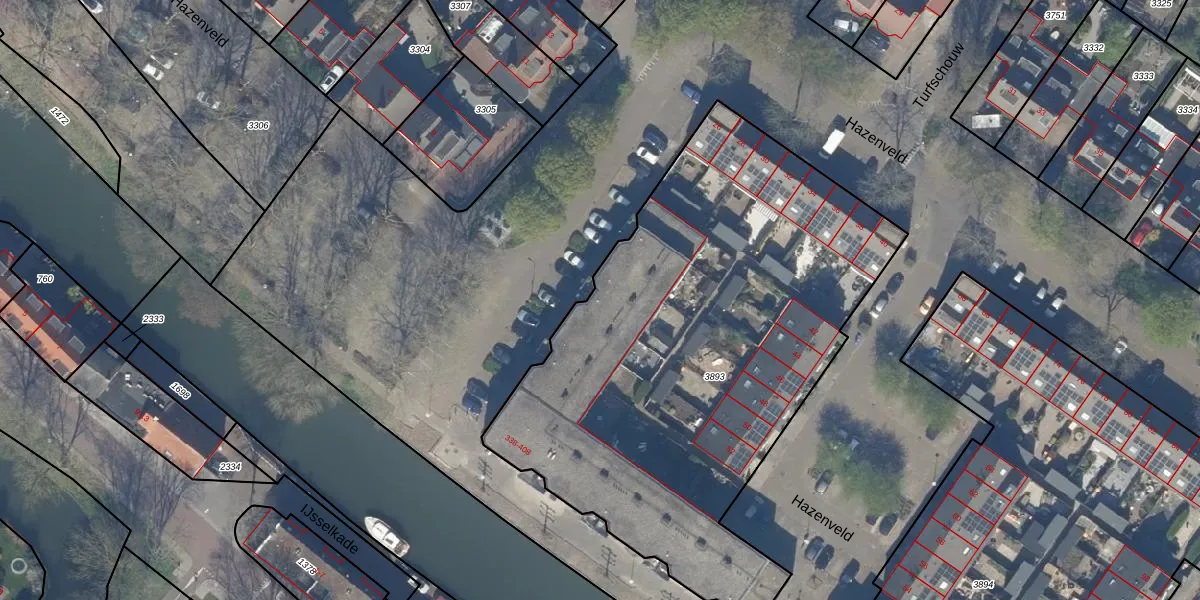 Hazenveld 402 is gelegen op kadastraal perceel ISS00D3893. Deze kadastrale aanduiding is uniek en wordt gebruikt door het Kadaster om eigendomsrechten en andere zakelijke rechten vast te leggen. Het perceel maakt onderdeel uit van de kadastrale gemeente IJsselstein.