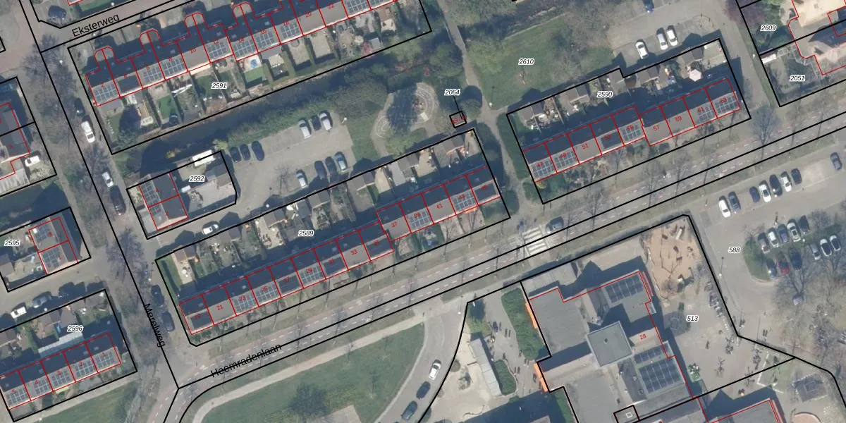 Het perceel waarop Heemradenlaan 39 staat heeft een oppervlakte van 1860 m². Dit is een zeer groot perceel. De perceeloppervlakte wordt geregistreerd door het Kadaster. Gedetailleerde informatie over de maten van dit perceel kunt u vinden in het rapport Kadastrale kaart met maatvoering van Heemradenlaan 39.