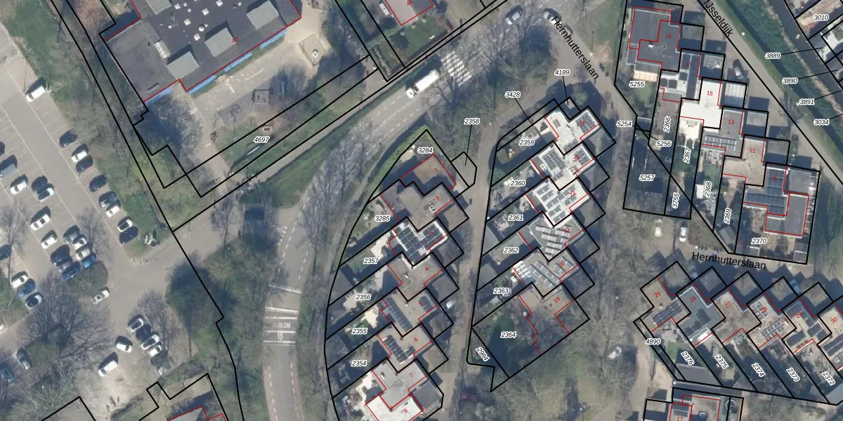 Hernhutterslaan 2 is gelegen op kadastraal perceel ISS00D3285. Deze kadastrale aanduiding is uniek en wordt gebruikt door het Kadaster om eigendomsrechten en andere zakelijke rechten vast te leggen. Het perceel maakt onderdeel uit van de kadastrale gemeente IJsselstein.