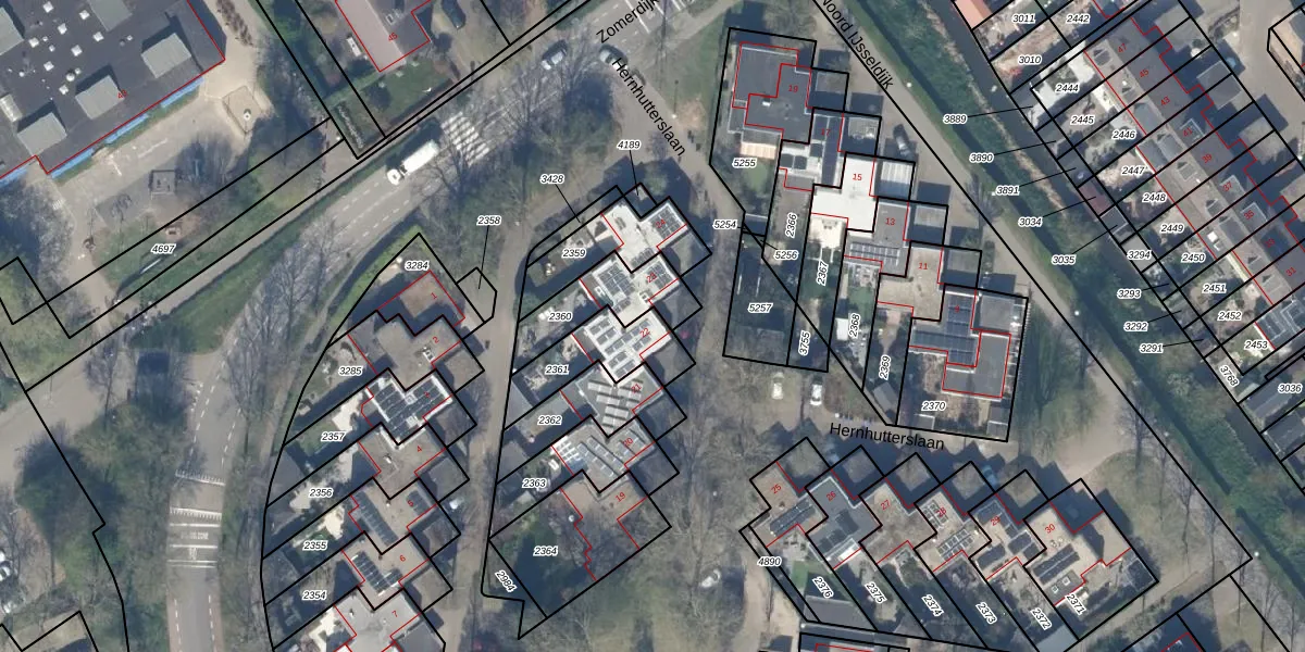 Gebruik de zoekbalk of klik op een perceel voor informatie over de adressen binnen dit perceel.