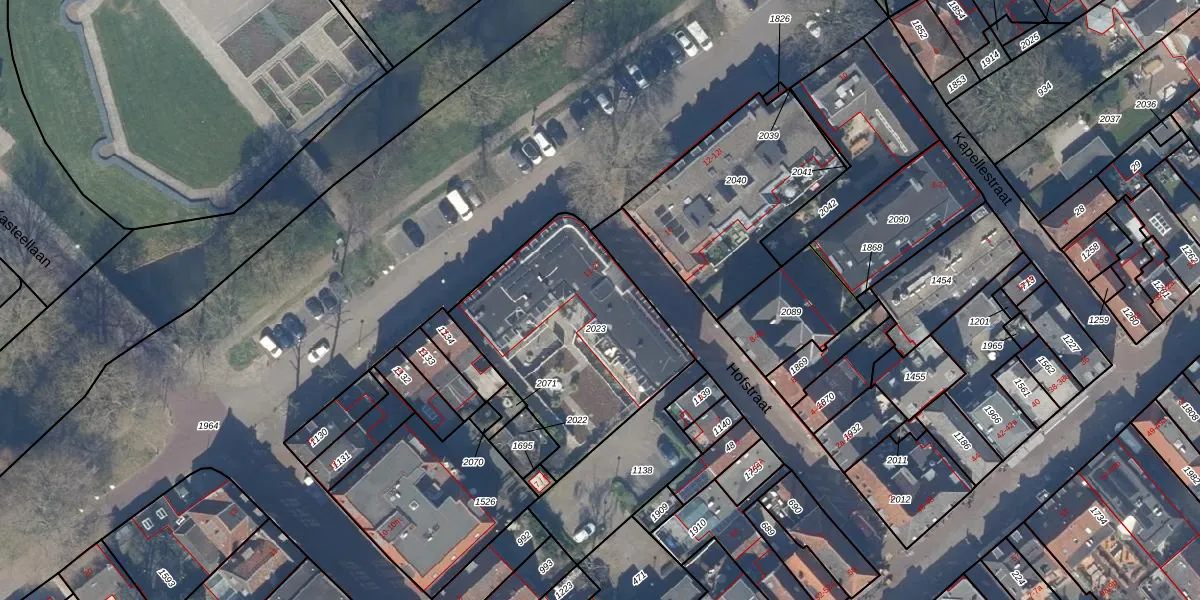 Het perceel waarop Hofstraat 25 staat heeft een oppervlakte van 902 m². Dit is een groot perceel. De perceeloppervlakte wordt geregistreerd door het Kadaster. Gedetailleerde informatie over de maten van dit perceel kunt u vinden in het rapport Kadastrale kaart met maatvoering van Hofstraat 25.