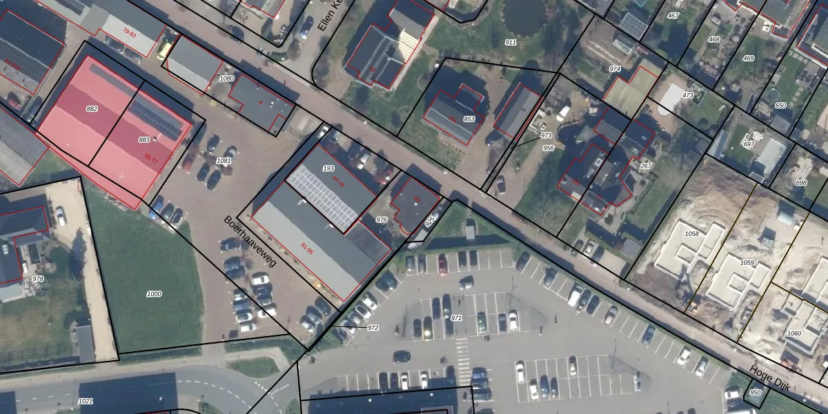 Het perceel waarop Hoge Dijk 50 staat heeft een oppervlakte van 800 m². Dit is een groot perceel. De perceeloppervlakte wordt geregistreerd door het Kadaster. Gedetailleerde informatie over de maten van dit perceel kunt u vinden in het rapport Kadastrale kaart met maatvoering van Hoge Dijk 50.