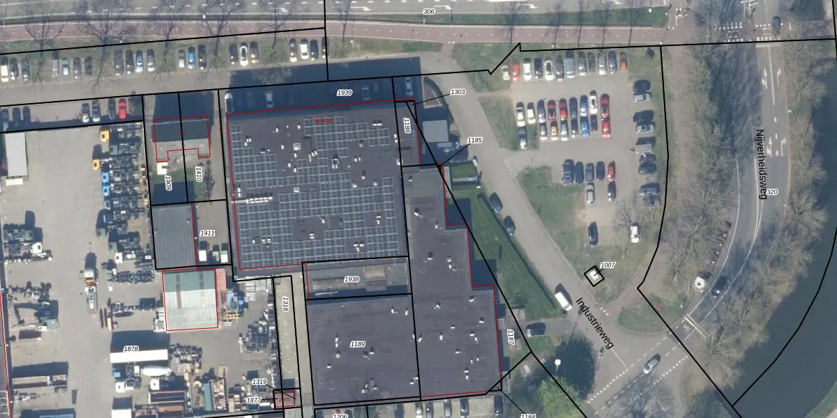 Het perceel waarop Industrieweg 37 staat heeft een oppervlakte van 1070 m². Dit is een zeer groot perceel. De perceeloppervlakte wordt geregistreerd door het Kadaster. Gedetailleerde informatie over de maten van dit perceel kunt u vinden in het rapport Kadastrale kaart met maatvoering van Industrieweg 37.