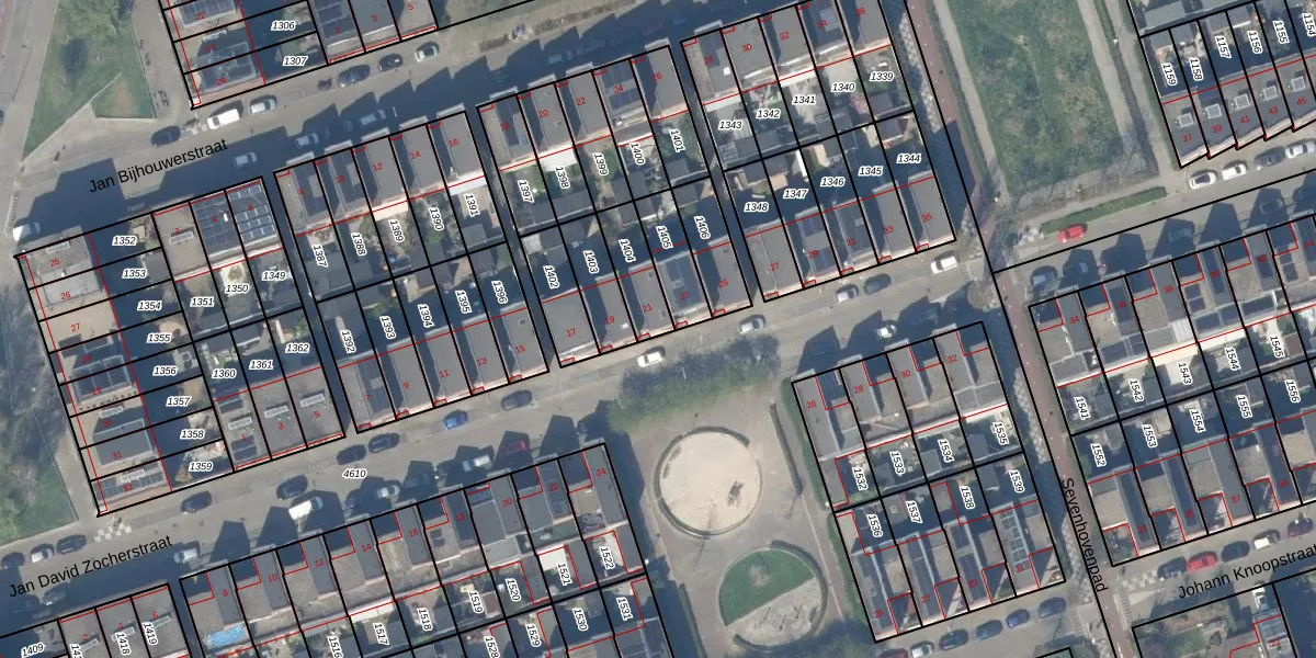 Het perceel waarop Jan David Zocherstraat 21 staat heeft een oppervlakte van 125 m². Dit is een middelgroot perceel. De perceeloppervlakte wordt geregistreerd door het Kadaster. Gedetailleerde informatie over de maten van dit perceel kunt u vinden in het rapport Kadastrale kaart met maatvoering van Jan David Zocherstraat 21.