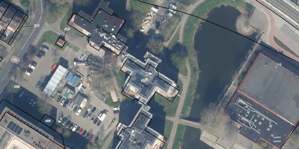 Het perceel waarop Jupiter 1 staat heeft een oppervlakte van 637 m². Dit is een groot perceel. De perceeloppervlakte wordt geregistreerd door het Kadaster. Gedetailleerde informatie over de maten van dit perceel kunt u vinden in het rapport Kadastrale kaart met maatvoering van Jupiter 1.