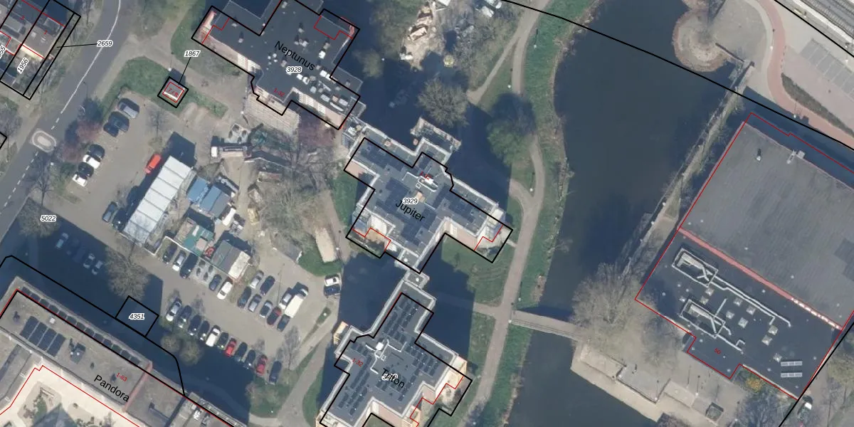 Het perceel waarop Jupiter 19 staat heeft een oppervlakte van 637 m². Dit is een groot perceel. De perceeloppervlakte wordt geregistreerd door het Kadaster. Gedetailleerde informatie over de maten van dit perceel kunt u vinden in het rapport Kadastrale kaart met maatvoering van Jupiter 19.
