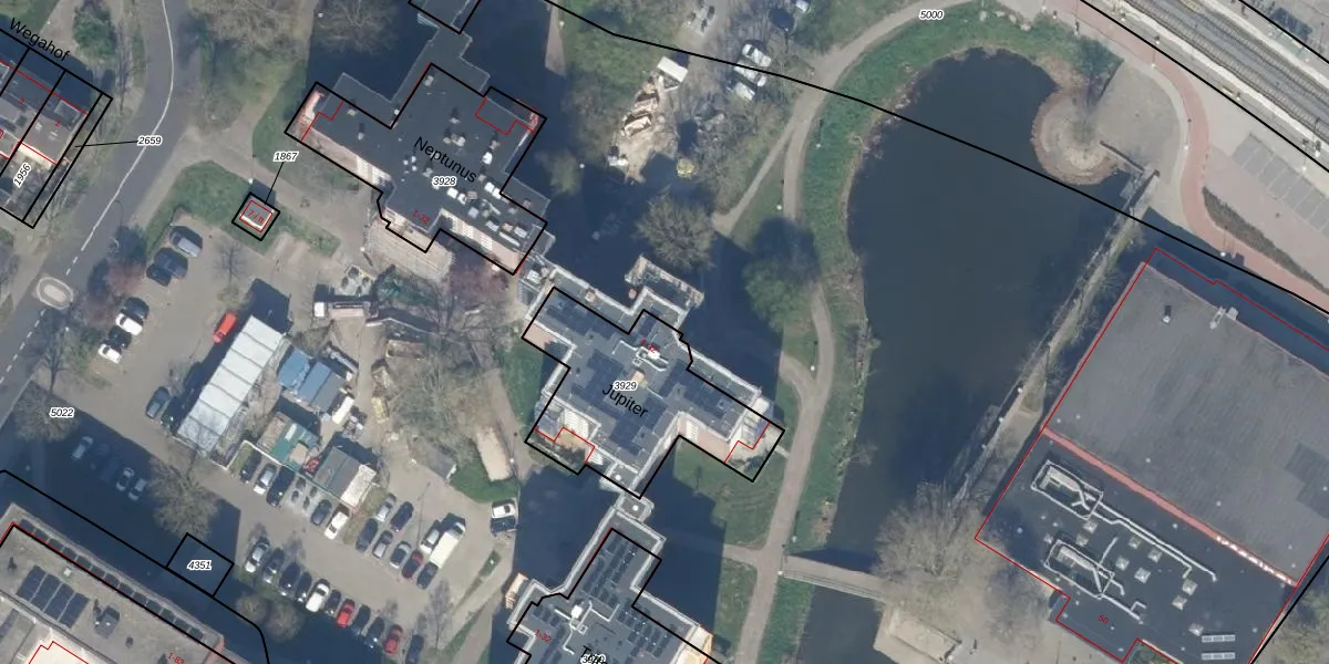 Het perceel waarop Jupiter 26 staat heeft een oppervlakte van 637 m². Dit is een groot perceel. De perceeloppervlakte wordt geregistreerd door het Kadaster. Gedetailleerde informatie over de maten van dit perceel kunt u vinden in het rapport Kadastrale kaart met maatvoering van Jupiter 26.
