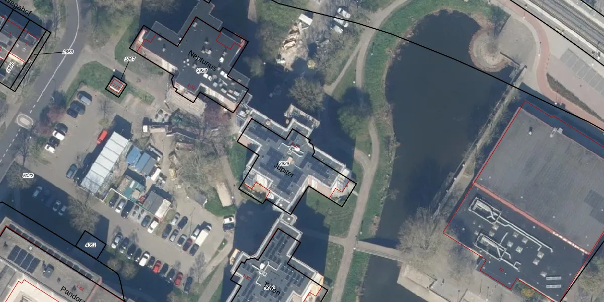 Het perceel waarop Jupiter 6 staat heeft een oppervlakte van 637 m². Dit is een groot perceel. De perceeloppervlakte wordt geregistreerd door het Kadaster. Gedetailleerde informatie over de maten van dit perceel kunt u vinden in het rapport Kadastrale kaart met maatvoering van Jupiter 6.