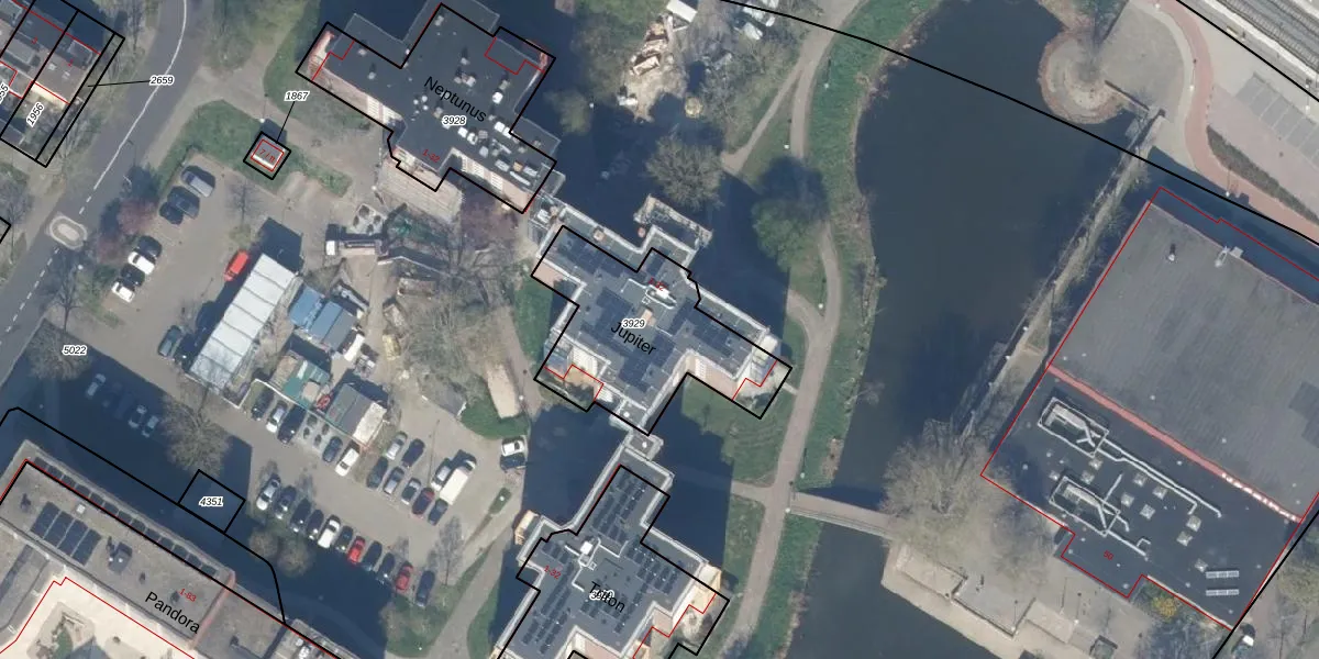 Het perceel waarop Jupiter 9 staat heeft een oppervlakte van 637 m². Dit is een groot perceel. De perceeloppervlakte wordt geregistreerd door het Kadaster. Gedetailleerde informatie over de maten van dit perceel kunt u vinden in het rapport Kadastrale kaart met maatvoering van Jupiter 9.