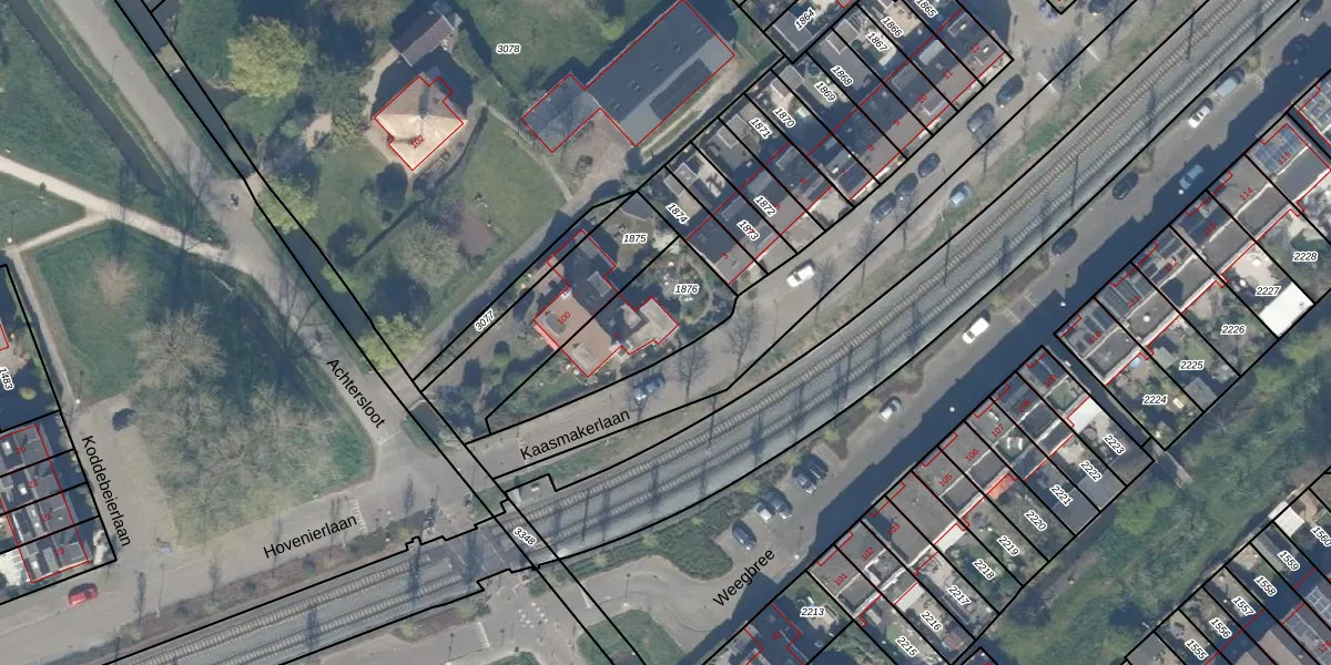 Gebruik de zoekbalk of klik op een perceel voor informatie over de adressen binnen dit perceel.