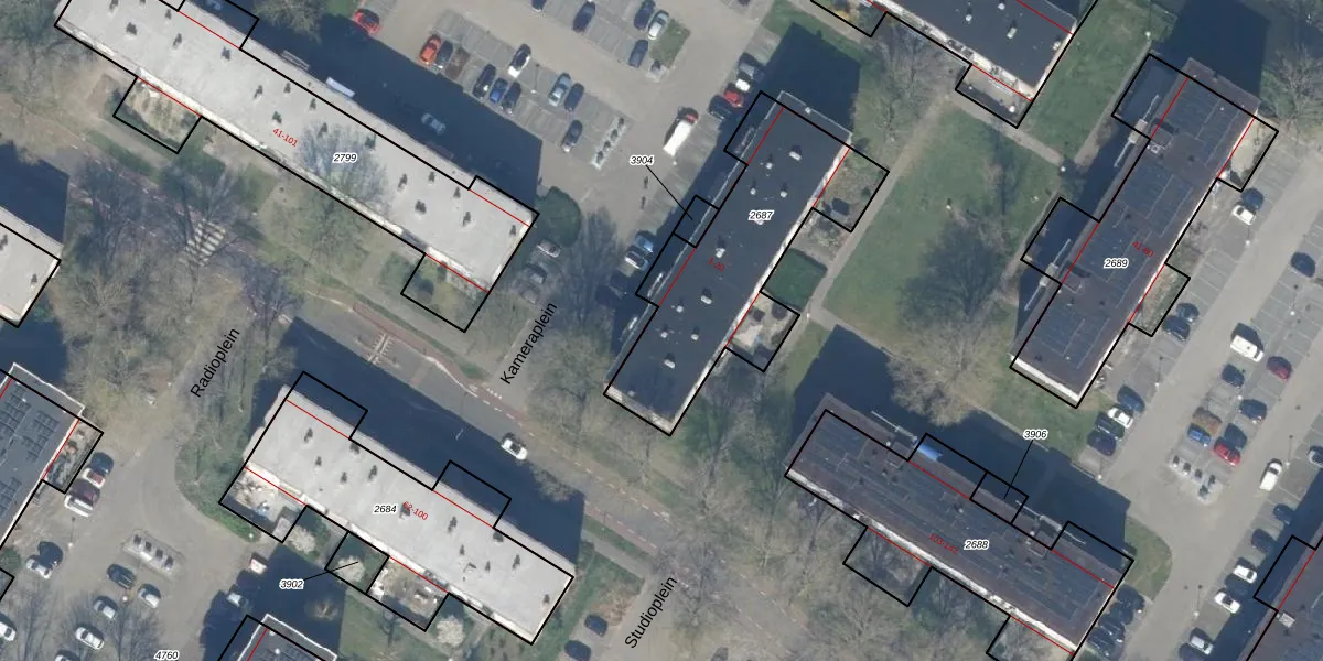 Het perceel waarop Kameraplein 1 staat heeft een oppervlakte van 852 m². Dit is een groot perceel. De perceeloppervlakte wordt geregistreerd door het Kadaster. Gedetailleerde informatie over de maten van dit perceel kunt u vinden in het rapport Kadastrale kaart met maatvoering van Kameraplein 1.