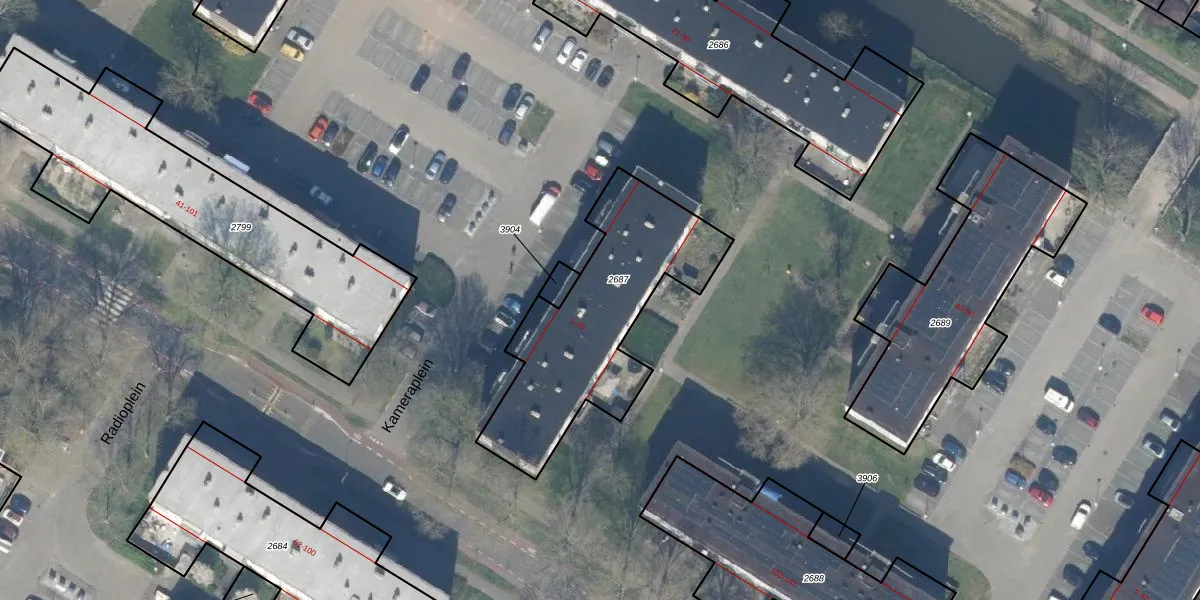 Het perceel waarop Kameraplein 12 staat heeft een oppervlakte van 852 m². Dit is een groot perceel. De perceeloppervlakte wordt geregistreerd door het Kadaster. Gedetailleerde informatie over de maten van dit perceel kunt u vinden in het rapport Kadastrale kaart met maatvoering van Kameraplein 12.
