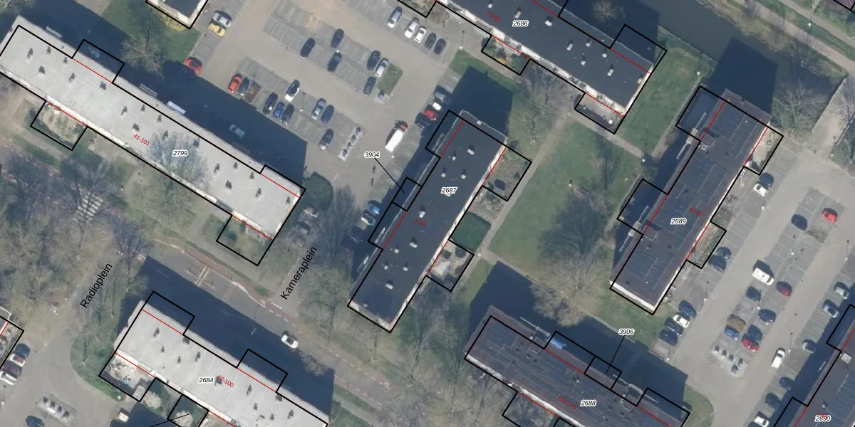 Het perceel waarop Kameraplein 13 staat heeft een oppervlakte van 852 m². Dit is een groot perceel. De perceeloppervlakte wordt geregistreerd door het Kadaster. Gedetailleerde informatie over de maten van dit perceel kunt u vinden in het rapport Kadastrale kaart met maatvoering van Kameraplein 13.