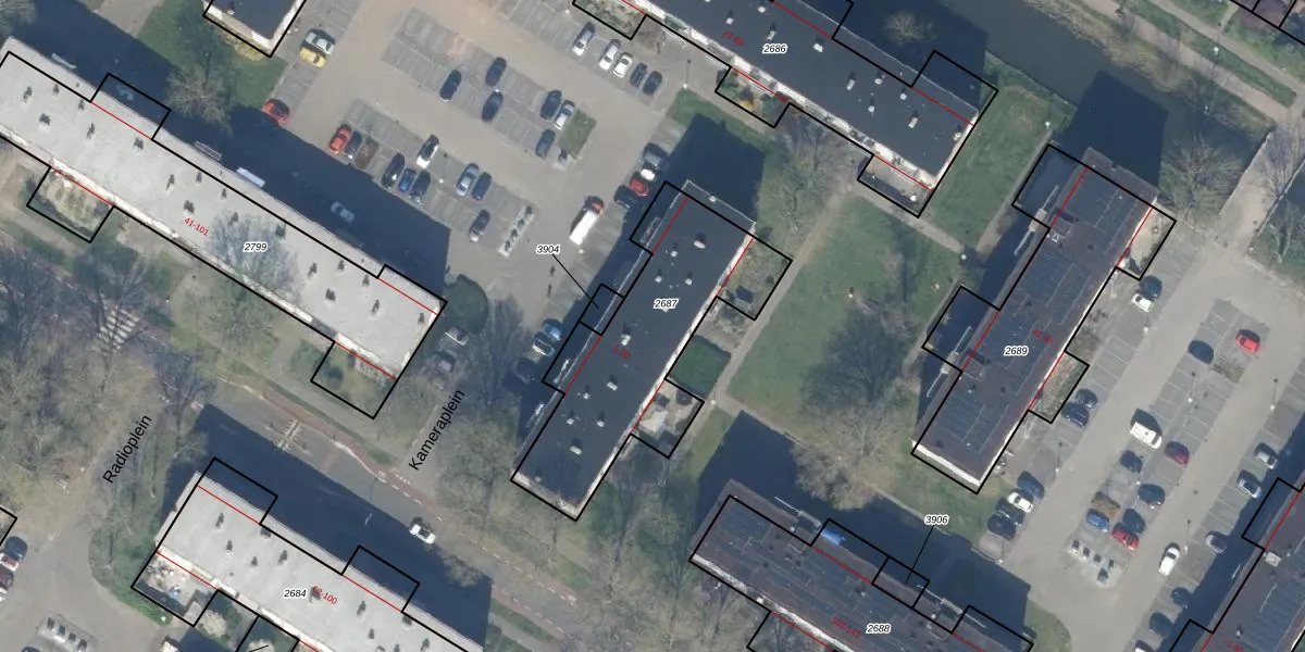 Het perceel waarop Kameraplein 17 staat heeft een oppervlakte van 852 m². Dit is een groot perceel. De perceeloppervlakte wordt geregistreerd door het Kadaster. Gedetailleerde informatie over de maten van dit perceel kunt u vinden in het rapport Kadastrale kaart met maatvoering van Kameraplein 17.