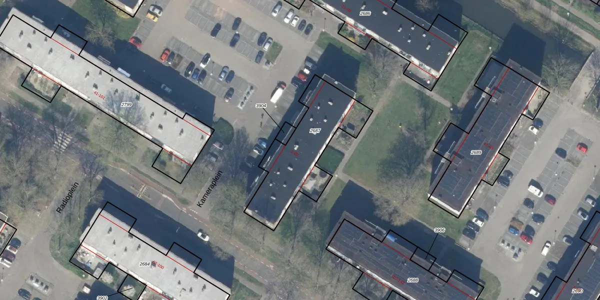 Het perceel waarop Kameraplein 19 staat heeft een oppervlakte van 852 m². Dit is een groot perceel. De perceeloppervlakte wordt geregistreerd door het Kadaster. Gedetailleerde informatie over de maten van dit perceel kunt u vinden in het rapport Kadastrale kaart met maatvoering van Kameraplein 19.