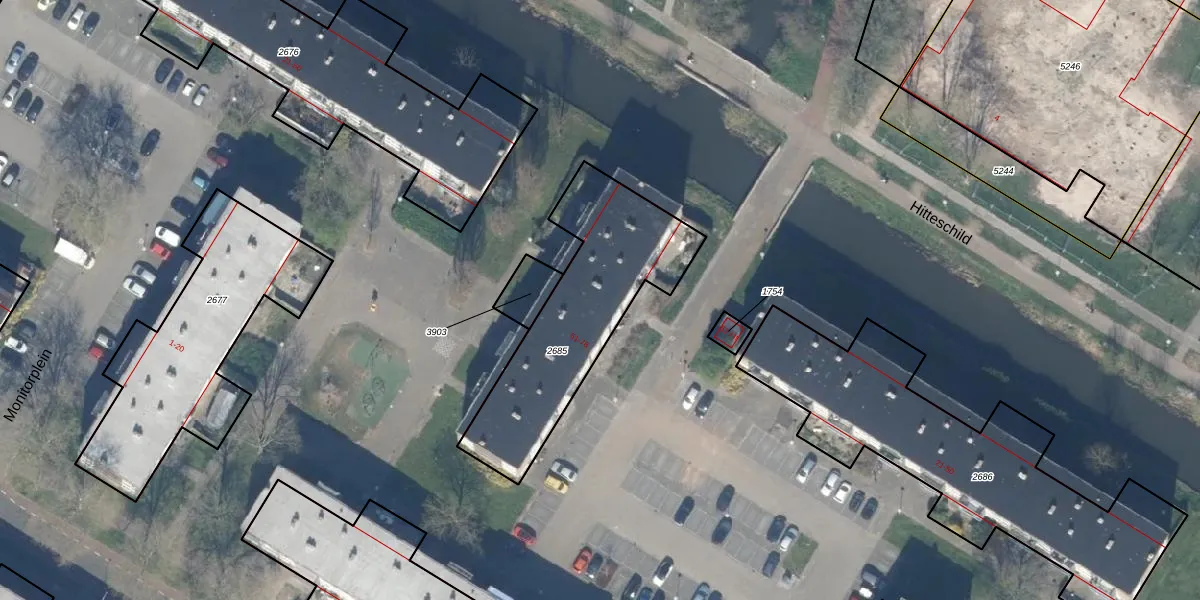 Het perceel waarop Kameraplein 54 staat heeft een oppervlakte van 749 m². Dit is een groot perceel. De perceeloppervlakte wordt geregistreerd door het Kadaster. Gedetailleerde informatie over de maten van dit perceel kunt u vinden in het rapport Kadastrale kaart met maatvoering van Kameraplein 54.