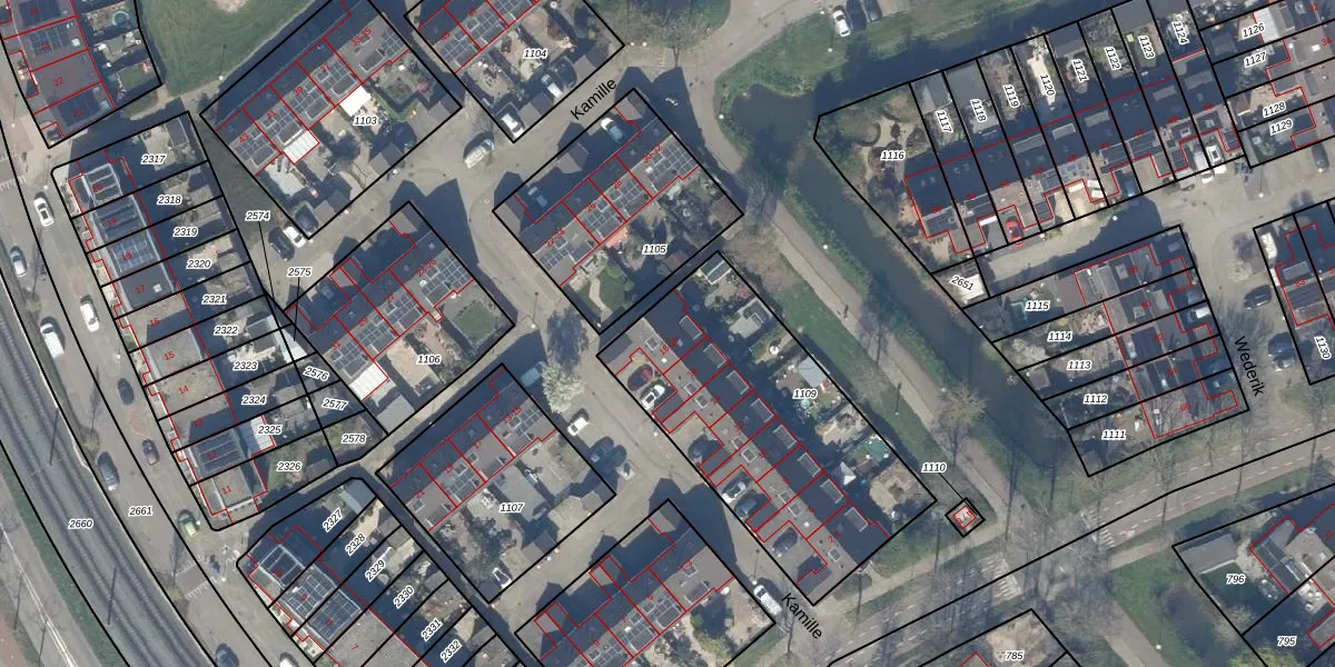 Het perceel waarop Kamille 20 staat heeft een oppervlakte van 1214 m². Dit is een zeer groot perceel. De perceeloppervlakte wordt geregistreerd door het Kadaster. Gedetailleerde informatie over de maten van dit perceel kunt u vinden in het rapport Kadastrale kaart met maatvoering van Kamille 20.