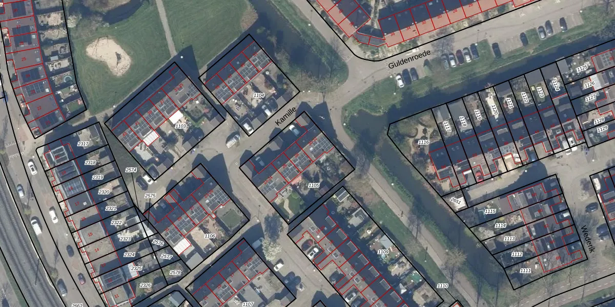 Het perceel waarop Kamille 30 staat heeft een oppervlakte van 695 m². Dit is een groot perceel. De perceeloppervlakte wordt geregistreerd door het Kadaster. Gedetailleerde informatie over de maten van dit perceel kunt u vinden in het rapport Kadastrale kaart met maatvoering van Kamille 30.