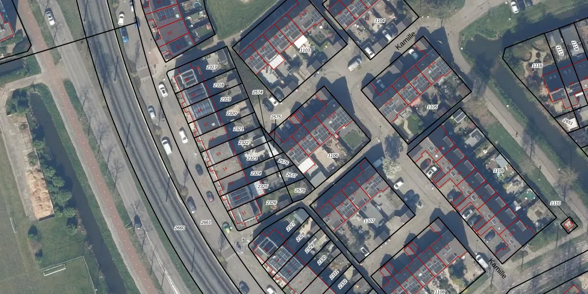 Het perceel waarop Kamille 31 staat heeft een oppervlakte van 611 m². Dit is een groot perceel. De perceeloppervlakte wordt geregistreerd door het Kadaster. Gedetailleerde informatie over de maten van dit perceel kunt u vinden in het rapport Kadastrale kaart met maatvoering van Kamille 31.