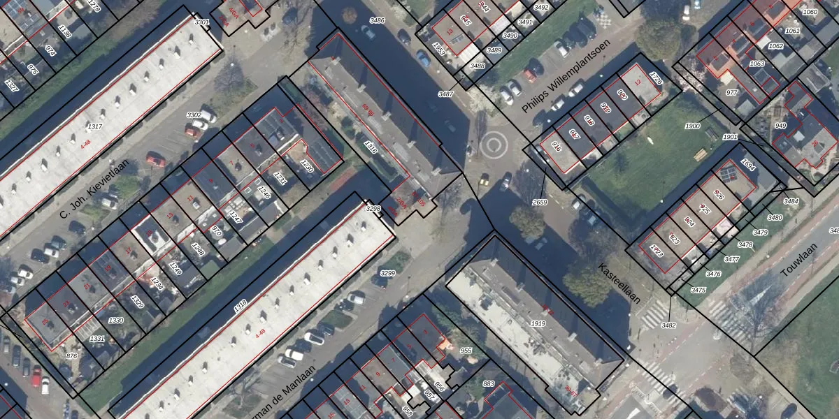 Het perceel waarop Kasteellaan 93 staat heeft een oppervlakte van 800 m². Dit is een groot perceel. De perceeloppervlakte wordt geregistreerd door het Kadaster. Gedetailleerde informatie over de maten van dit perceel kunt u vinden in het rapport Kadastrale kaart met maatvoering van Kasteellaan 93.