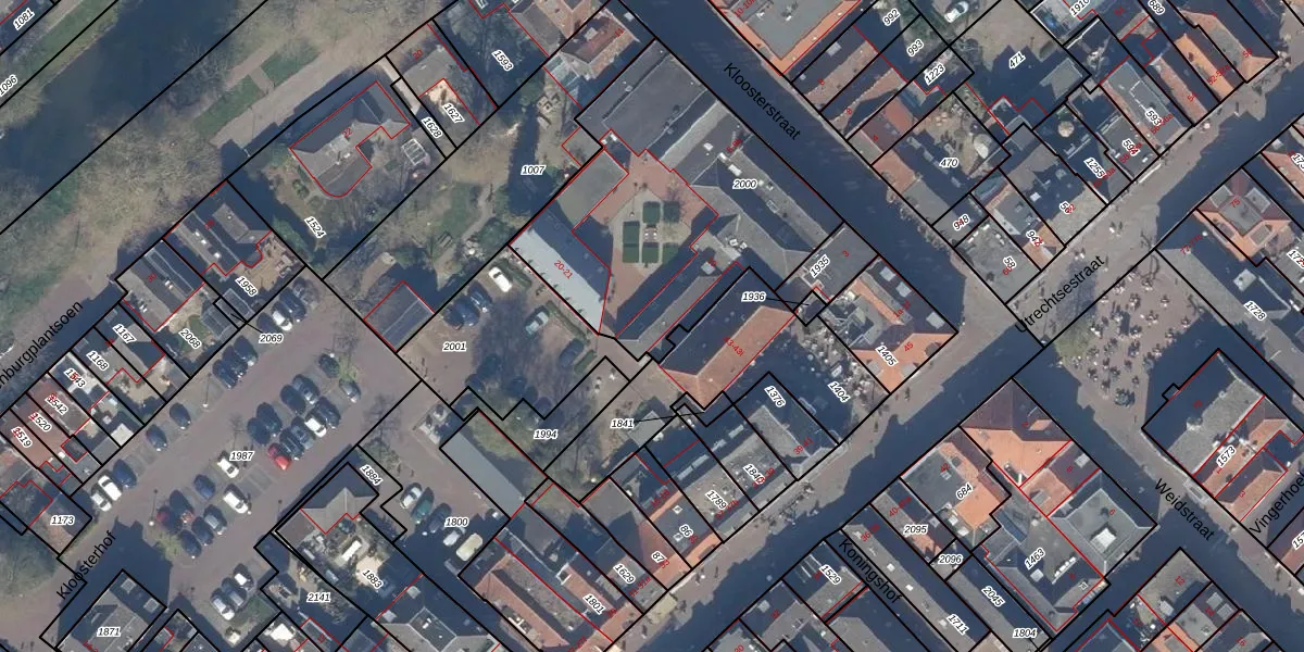 Het perceel waarop Kloosterhof 19 staat heeft een oppervlakte van 1341 m². Dit is een zeer groot perceel. De perceeloppervlakte wordt geregistreerd door het Kadaster. Gedetailleerde informatie over de maten van dit perceel kunt u vinden in het rapport Kadastrale kaart met maatvoering van Kloosterhof 19.