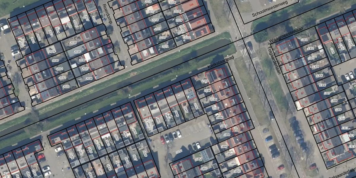 Gebruik de zoekbalk of klik op een perceel voor informatie over de adressen binnen dit perceel.