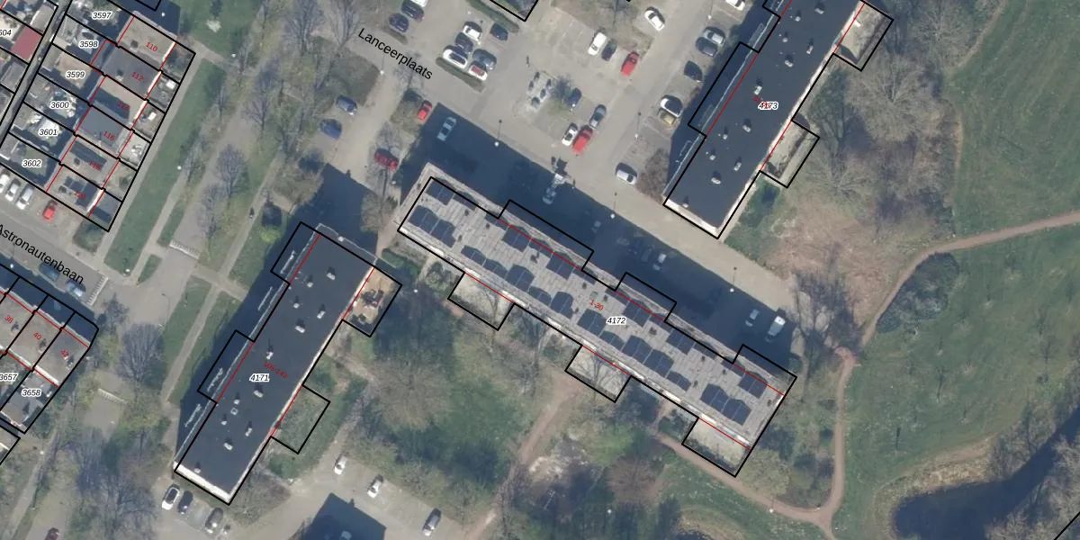 Het perceel waarop Lanceerplaats 14 staat heeft een oppervlakte van 1278 m². Dit is een zeer groot perceel. De perceeloppervlakte wordt geregistreerd door het Kadaster. Gedetailleerde informatie over de maten van dit perceel kunt u vinden in het rapport Kadastrale kaart met maatvoering van Lanceerplaats 14.