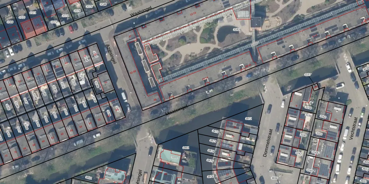 Het perceel waarop Maassingel 44 staat heeft een oppervlakte van 6320 m². Dit is een zeer groot perceel. De perceeloppervlakte wordt geregistreerd door het Kadaster. Gedetailleerde informatie over de maten van dit perceel kunt u vinden in het rapport Kadastrale kaart met maatvoering van Maassingel 44.