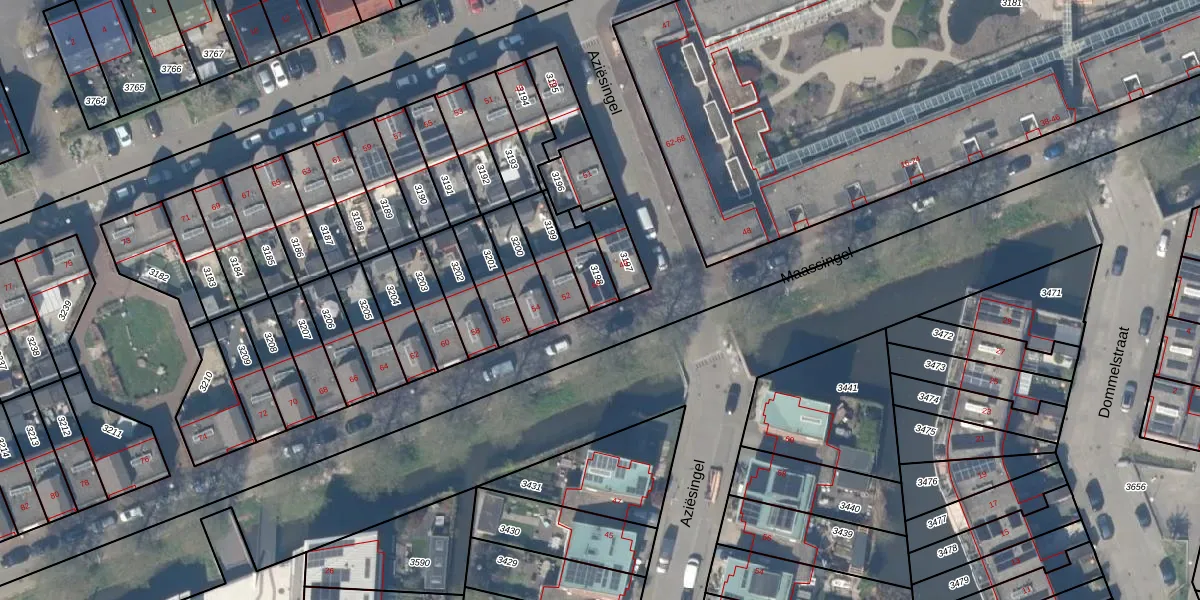 Het perceel waarop Maassingel 50 staat heeft een oppervlakte van 90 m². Dit is een klein perceel. De perceeloppervlakte wordt geregistreerd door het Kadaster. Gedetailleerde informatie over de maten van dit perceel kunt u vinden in het rapport Kadastrale kaart met maatvoering van Maassingel 50.