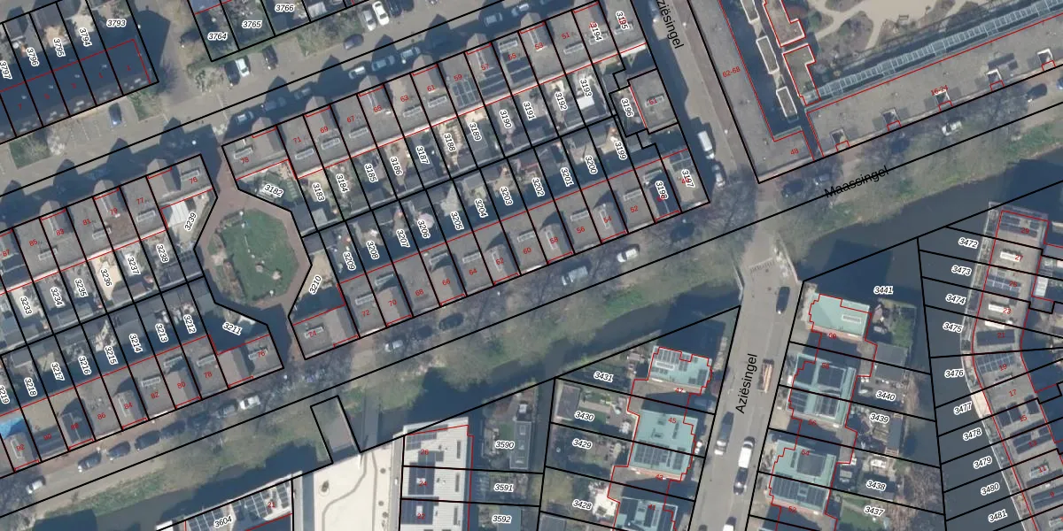 Het perceel waarop Maassingel 60 staat heeft een oppervlakte van 119 m². Dit is een middelgroot perceel. De perceeloppervlakte wordt geregistreerd door het Kadaster. Gedetailleerde informatie over de maten van dit perceel kunt u vinden in het rapport Kadastrale kaart met maatvoering van Maassingel 60.