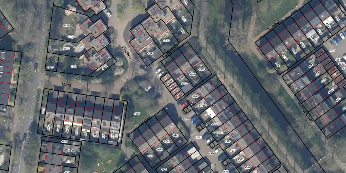 Gebruik de zoekbalk of klik op een perceel voor informatie over de adressen binnen dit perceel.