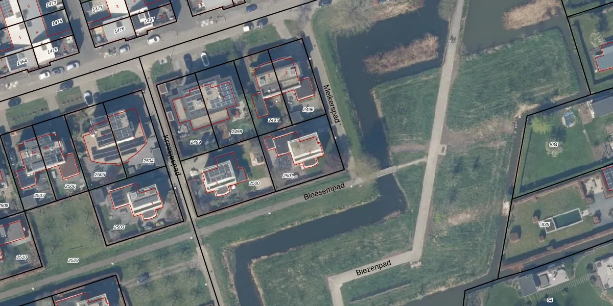 Het perceel waarop Meikerspad 2 staat heeft een oppervlakte van 447 m². Dit is een groot perceel. De perceeloppervlakte wordt geregistreerd door het Kadaster. Gedetailleerde informatie over de maten van dit perceel kunt u vinden in het rapport Kadastrale kaart met maatvoering van Meikerspad 2.