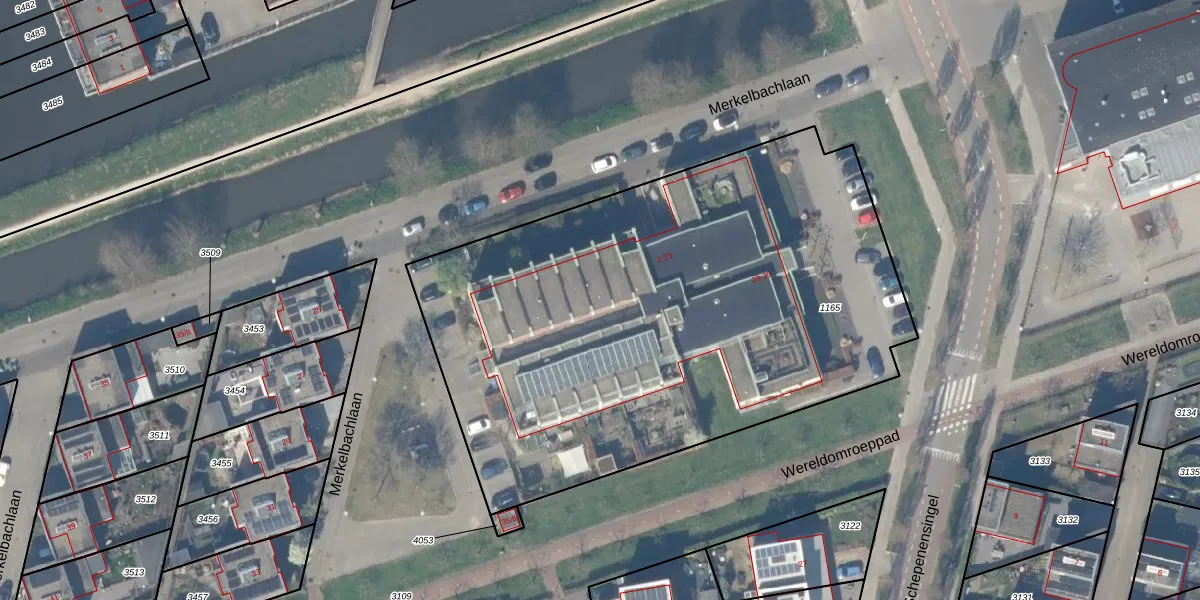 Het perceel waarop Merkelbachlaan 21 staat heeft een oppervlakte van 3338 m². Dit is een zeer groot perceel. De perceeloppervlakte wordt geregistreerd door het Kadaster. Gedetailleerde informatie over de maten van dit perceel kunt u vinden in het rapport Kadastrale kaart met maatvoering van Merkelbachlaan 21.