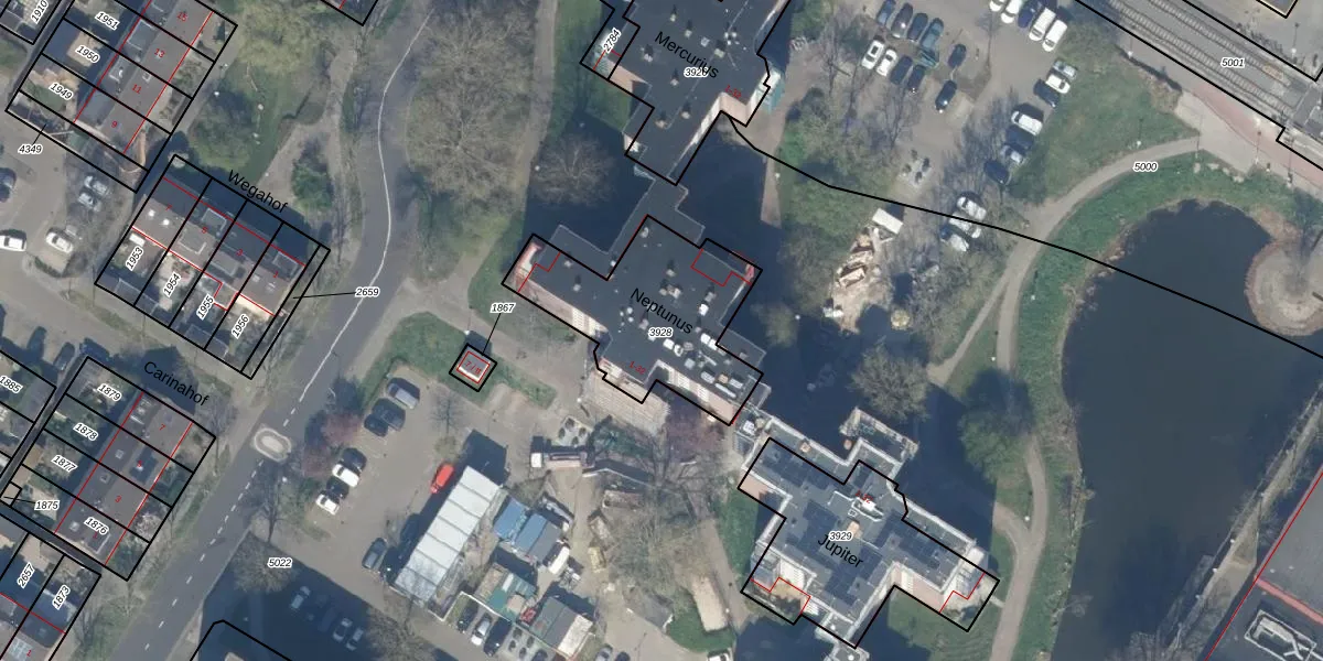 Het perceel waarop Neptunus 26 staat heeft een oppervlakte van 636 m². Dit is een groot perceel. De perceeloppervlakte wordt geregistreerd door het Kadaster. Gedetailleerde informatie over de maten van dit perceel kunt u vinden in het rapport Kadastrale kaart met maatvoering van Neptunus 26.