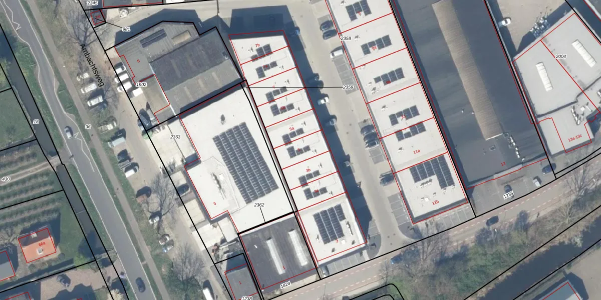 Het perceel waarop Nijverheidsweg 5 staat heeft een oppervlakte van 5401 m². Dit is een zeer groot perceel. De perceeloppervlakte wordt geregistreerd door het Kadaster. Gedetailleerde informatie over de maten van dit perceel kunt u vinden in het rapport Kadastrale kaart met maatvoering van Nijverheidsweg 5.