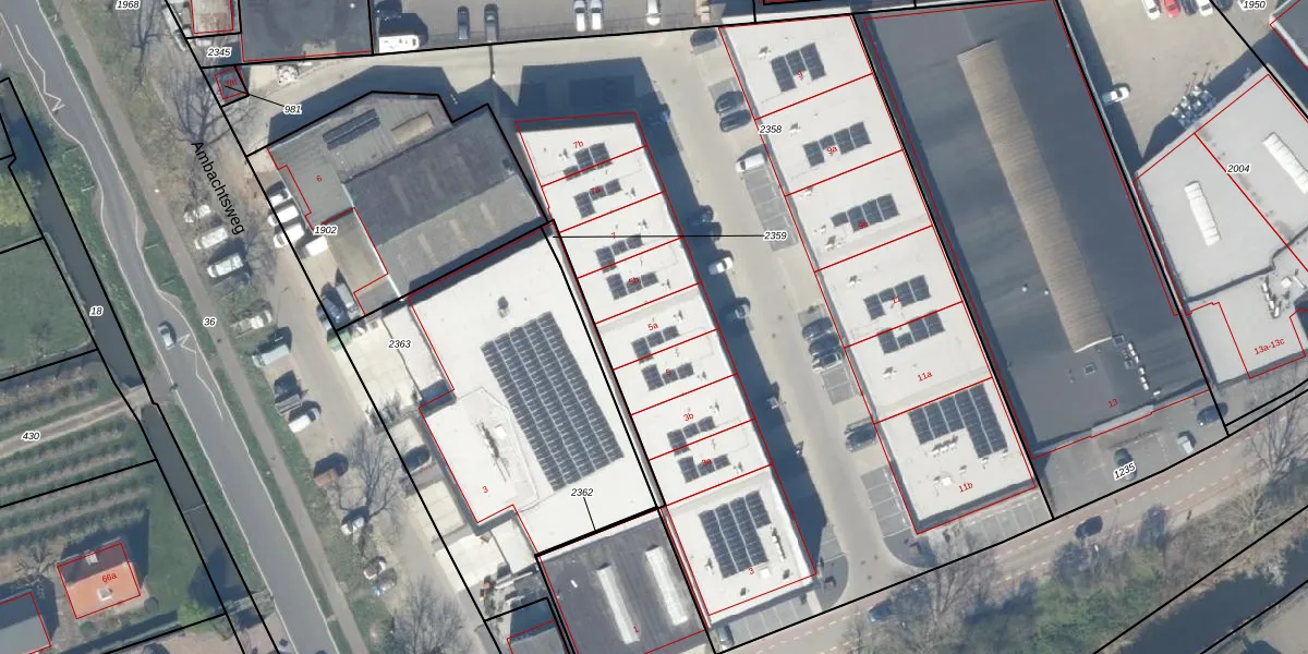 Het perceel waarop Nijverheidsweg 5-a staat heeft een oppervlakte van 5401 m². Dit is een zeer groot perceel. De perceeloppervlakte wordt geregistreerd door het Kadaster. Gedetailleerde informatie over de maten van dit perceel kunt u vinden in het rapport Kadastrale kaart met maatvoering van Nijverheidsweg 5-a.