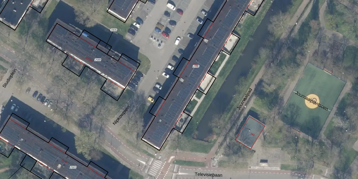 Het perceel waarop Nipkowplein 13 staat heeft een oppervlakte van 1657 m². Dit is een zeer groot perceel. De perceeloppervlakte wordt geregistreerd door het Kadaster. Gedetailleerde informatie over de maten van dit perceel kunt u vinden in het rapport Kadastrale kaart met maatvoering van Nipkowplein 13.