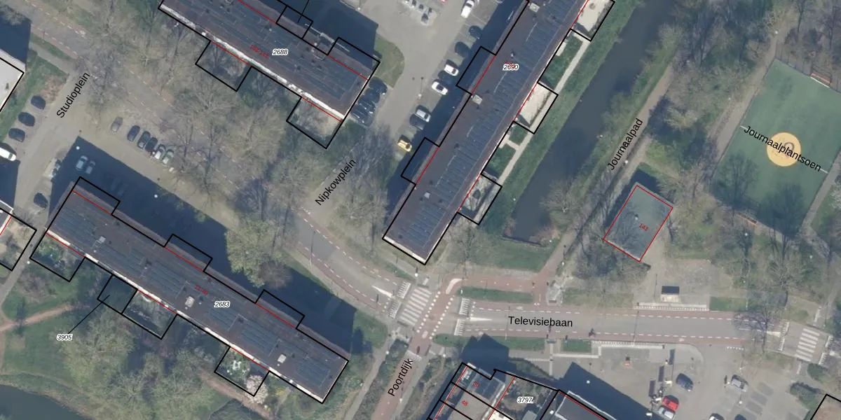 Het perceel waarop Nipkowplein 2 staat heeft een oppervlakte van 1657 m². Dit is een zeer groot perceel. De perceeloppervlakte wordt geregistreerd door het Kadaster. Gedetailleerde informatie over de maten van dit perceel kunt u vinden in het rapport Kadastrale kaart met maatvoering van Nipkowplein 2.