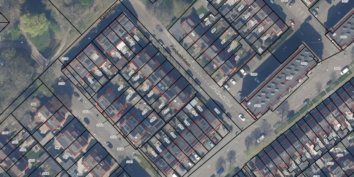 Het perceel waarop Pasqualinilaan 3 staat heeft een oppervlakte van 157 m². Dit is een middelgroot perceel. De perceeloppervlakte wordt geregistreerd door het Kadaster. Gedetailleerde informatie over de maten van dit perceel kunt u vinden in het rapport Kadastrale kaart met maatvoering van Pasqualinilaan 3.