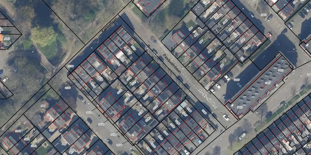 Het perceel waarop Pasqualinilaan 7 staat heeft een oppervlakte van 157 m². Dit is een middelgroot perceel. De perceeloppervlakte wordt geregistreerd door het Kadaster. Gedetailleerde informatie over de maten van dit perceel kunt u vinden in het rapport Kadastrale kaart met maatvoering van Pasqualinilaan 7.