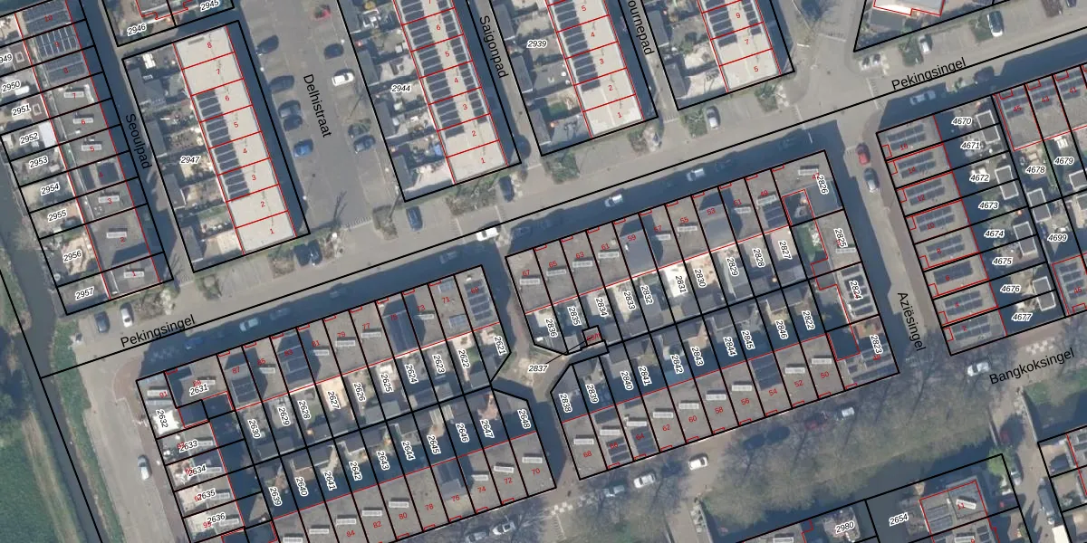 Het perceel waarop Pekingsingel 65 staat heeft een oppervlakte van 100 m². Dit is een middelgroot perceel. De perceeloppervlakte wordt geregistreerd door het Kadaster. Gedetailleerde informatie over de maten van dit perceel kunt u vinden in het rapport Kadastrale kaart met maatvoering van Pekingsingel 65.
