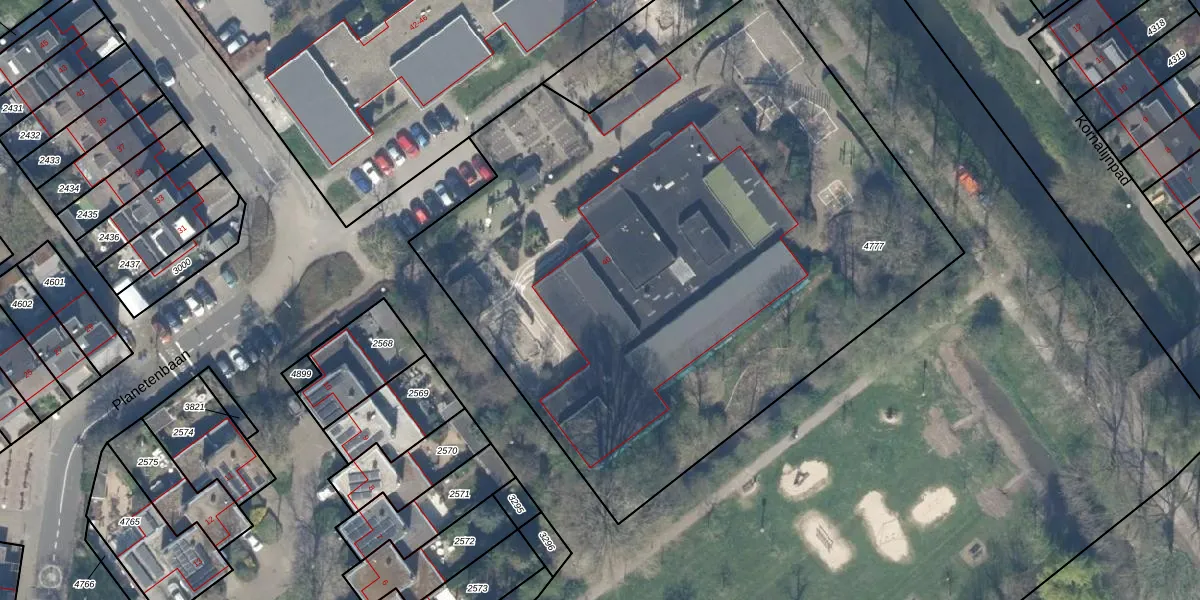 Het perceel waarop Planetenbaan 40 staat heeft een oppervlakte van 4335 m². Dit is een zeer groot perceel. De perceeloppervlakte wordt geregistreerd door het Kadaster. Gedetailleerde informatie over de maten van dit perceel kunt u vinden in het rapport Kadastrale kaart met maatvoering van Planetenbaan 40.