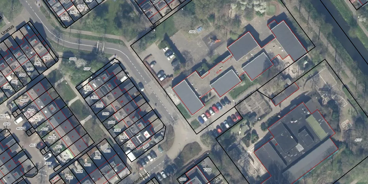 Het perceel waarop Planetenbaan 46 staat heeft een oppervlakte van 4823 m². Dit is een zeer groot perceel. De perceeloppervlakte wordt geregistreerd door het Kadaster. Gedetailleerde informatie over de maten van dit perceel kunt u vinden in het rapport Kadastrale kaart met maatvoering van Planetenbaan 46.