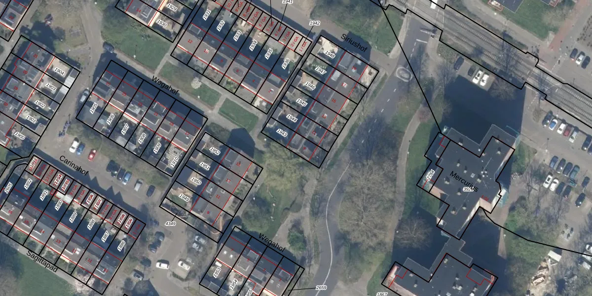 Gebruik de zoekbalk of klik op een perceel voor informatie over de adressen binnen dit perceel.